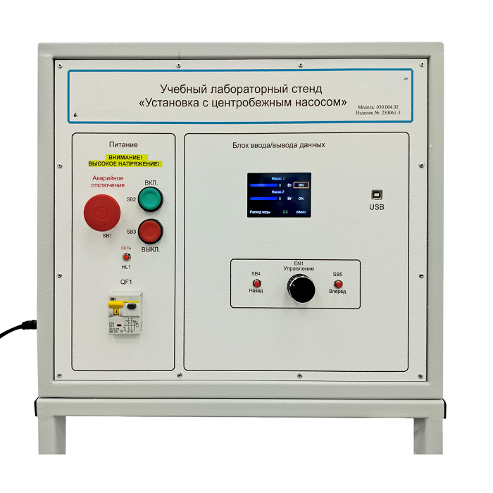 Стенд «Исследование параметров работы насосов» предназначен для проведения лабораторных работ в средних и высших учебных заведениях для студентов, обучающихся по направлению «Строительство». Выполнен согласно ТУ 32.99.53–001–09519063 – 2019 и имеет соответствующий сертификат производителя ГОСТ Р на данный вид продукции и сертификат качества ИСО 9001-2015.